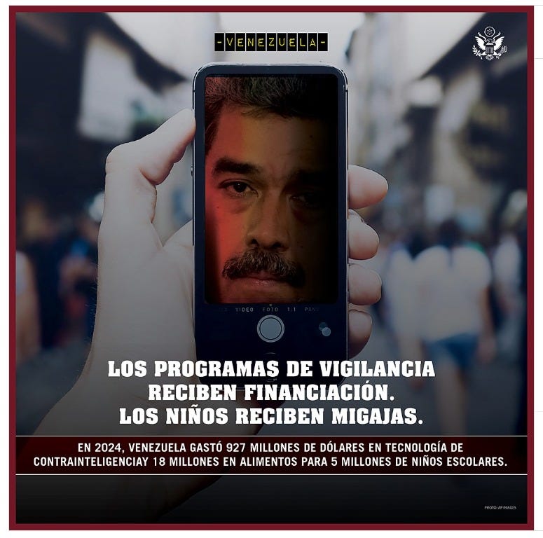 -El Pitazo: EEUU acusa a Maduro de destinar 927 millones de dólares a espionaje en lugar de ayuda humanitaria.