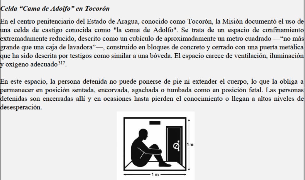 - La Comisión de Determinación de los Hechos de la ONU para Venezuela Identificó 4 tipos de celdas de castigos en Tocorón y Tocuyito, cuyo uso “constituye una forma de tortura, así como de trato cruel, inhumano o degradante”.