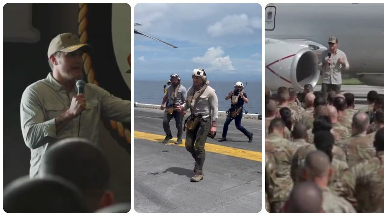 - Hegseth: “¿Cómo estamos, guerreros? Creo que esta podría ser la imagen más hermosa que he visto en mi vida. Mirando estos rostros, mirando este Caribe en una isla flotante del poder estadounidense, en primera línea, defendiendo la patria estadounidense”.