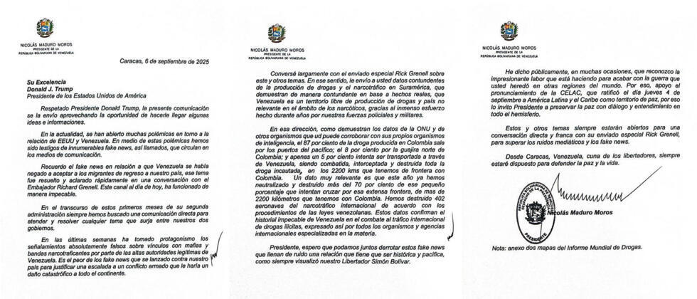 Gobierno de Maduro admite envío de carta a Trump en busca de un canal de diálogo "directo".