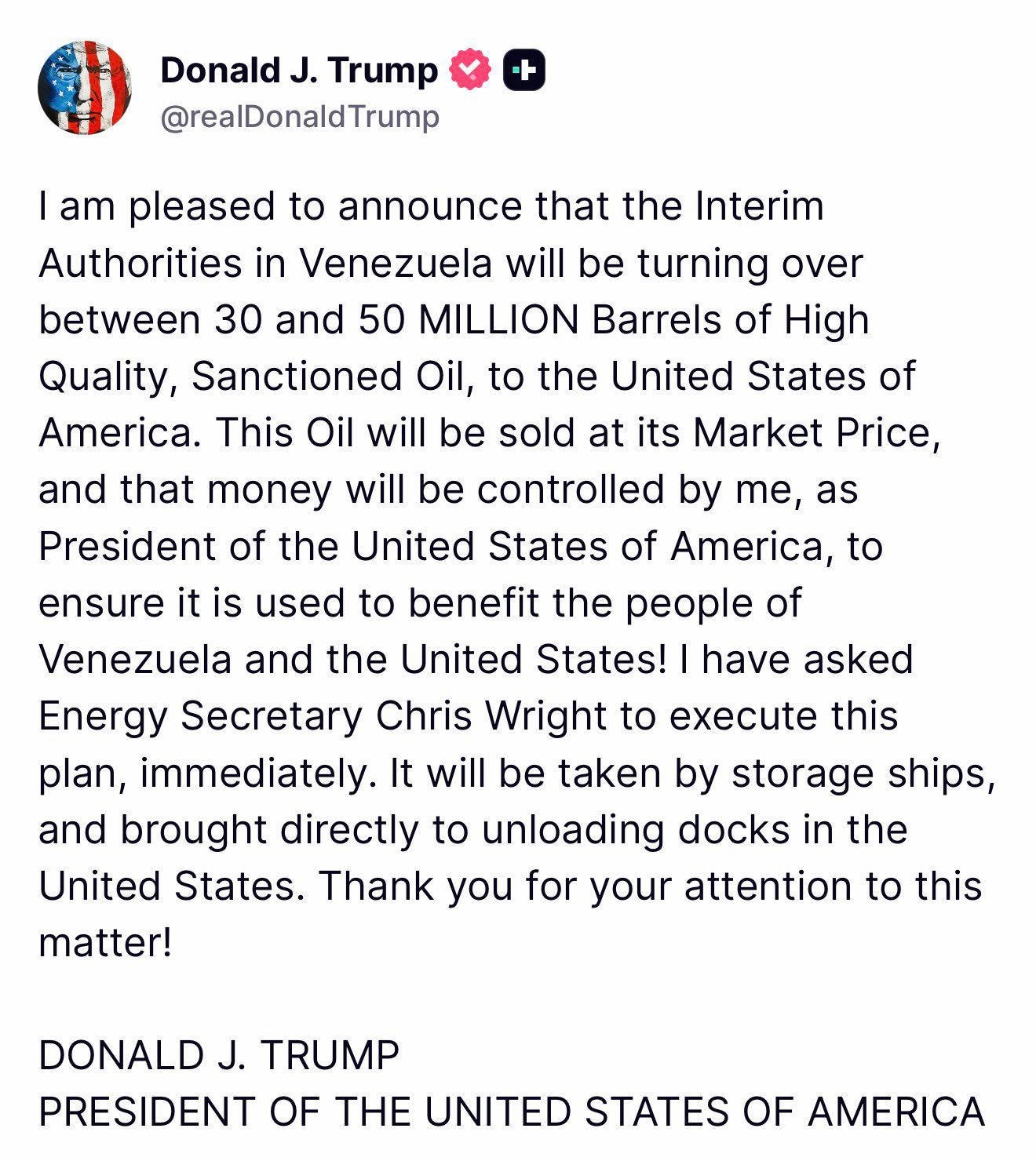 -El País: Trump dice que Venezuela le entregará hasta 50 millones de barriles de crudo.