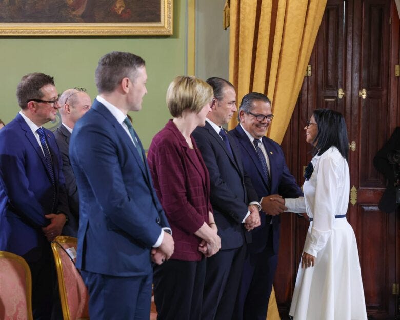 Sería interesante conocer los comentarios de los funcionarios estadounidenses y petroleros que asistieron a la firma de los nuevos acuerdos de Chevron y que, tras culminar el acto, luego vieron a Delcy vestida de miliciana, hablando mal de quienes desean “apoderarse del poder político y entregar nuestras riquezas a poderes extranjeros”.