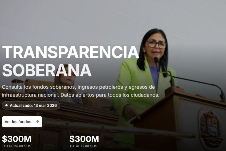 - El gobierno venezolano anunció la entrada al país de $300 millones a través del recién creado portal Transparencia Soberana, una plataforma que se presenta como herramienta para mostrar el uso de los recursos públicos. El pasado 13 de marzo, el sitio web reportó el ingreso de ese dinero y ese mismo día hubo un egreso por la misma cantidad e indica que la salida de fondos fue para el «aumento del ingreso mínimo integral».